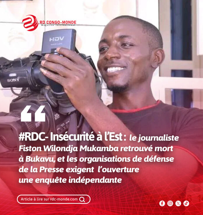 RDC- Insécurité à l’Est : le journaliste Fiston Wilondja Mukamba retrouvé mort à Bukavu, et les organisations de défense de la Presse exigent  l’ouverture    une enquête indépendante
