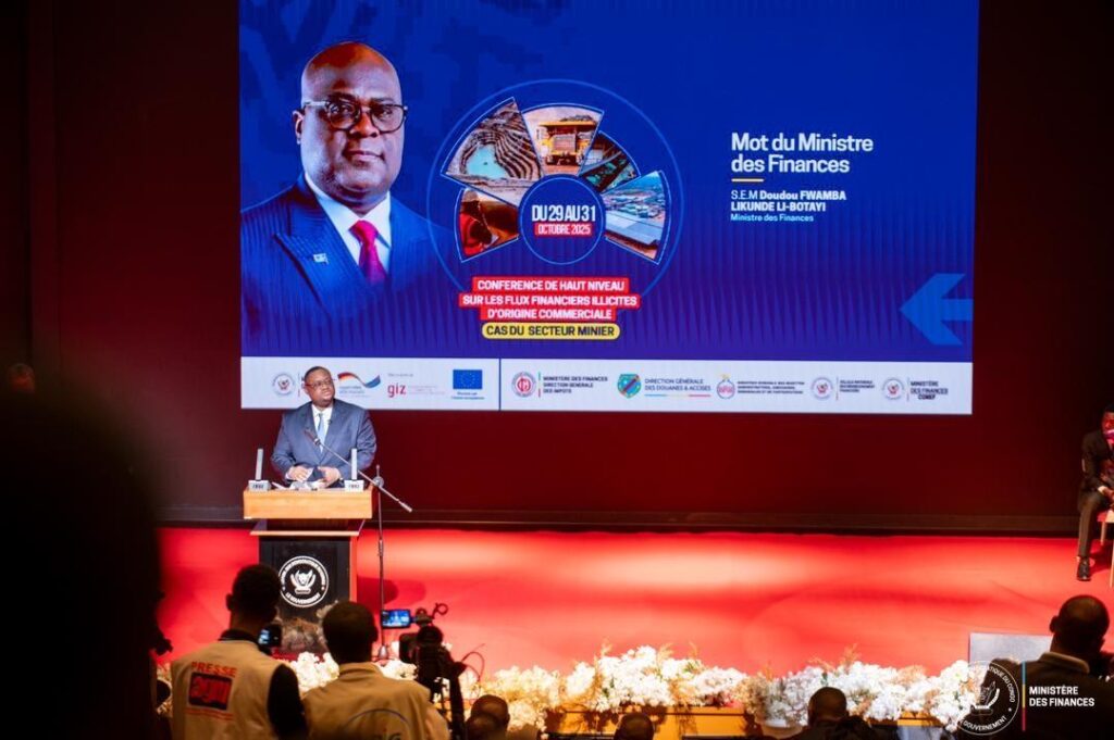 Le ministre des Finances, Doudou Fwamba Likunde Li-Botayi, a procédé, mercredi 29 octobre 2025 à Kinshasa, à l’ouverture officielle de la conférence de haut niveau sur les flux financiers illicites d’origine commerciale dans le secteur minier. L’événement, organisé avec l’appui de la Coopération allemande (GIZ), s’est tenu en présence des responsables des trois régies financières du pays, à savoir la DGI, la DGDA et la DGRAD.