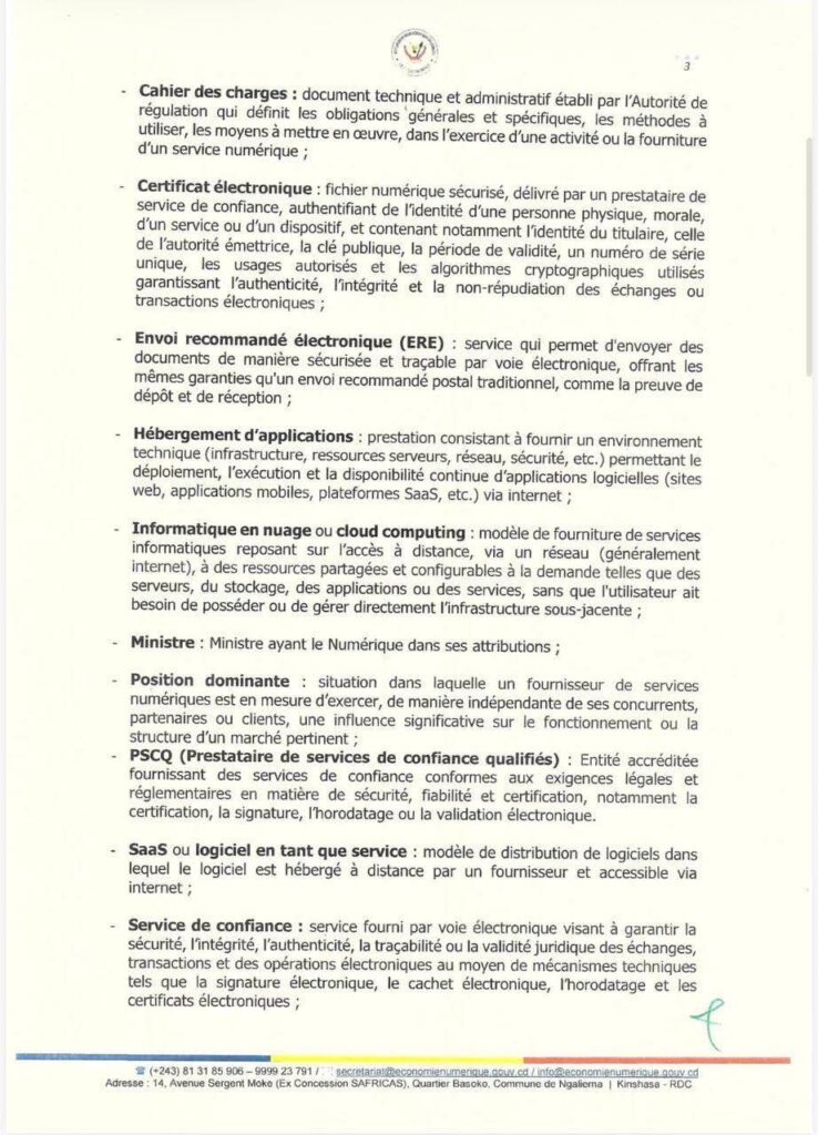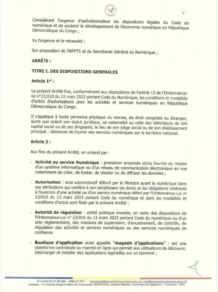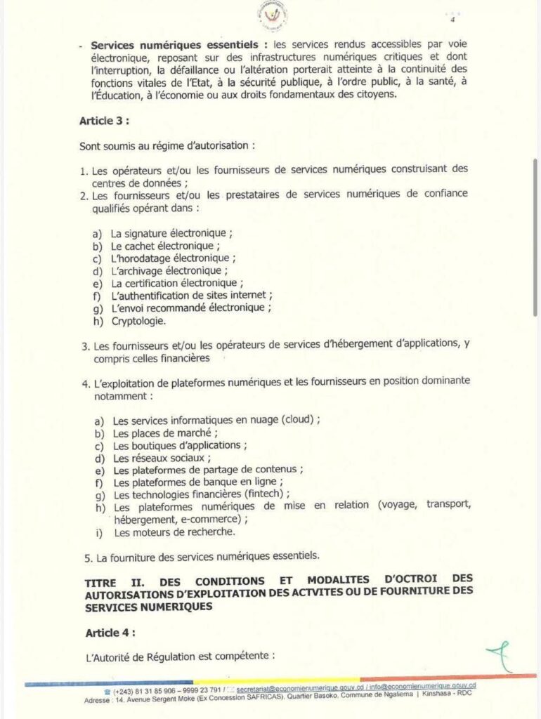 Ce texte, qui marque la fin d’une période d’exercice peu régulée des activités numériques, s’inscrit dans la mise en œuvre du Code_du_numérique. Il vise à clarifier le cadre légal pour les opérateurs, sécuriser les investissements et garantir la protection des données et la continuité des services essentiels. Les entreprises congolaises comme étrangères devront désormais obtenir une autorisation préalable pour exploiter des services critiques tels que le cloud, les fintechs, les marketplaces, les centres de données ou les services de confiance numérique.