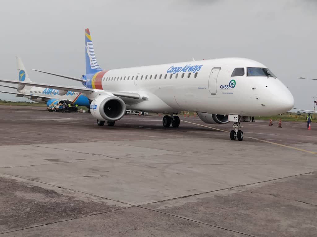 Sous le Haut Patronage du Chef de l’État, Son Excellence Félix Antoine Tshisekedi Tshilombo, et grâce au leadership visionnaire du Directeur général de Congo Airways, M. Alexandre Mukendi Tshikala, la Caisse Nationale de Sécurité Sociale (CNSS) a remis officiellement un premier aéronef Embraer E-190, premier d’une série de trois, à la compagnie aérienne nationale.