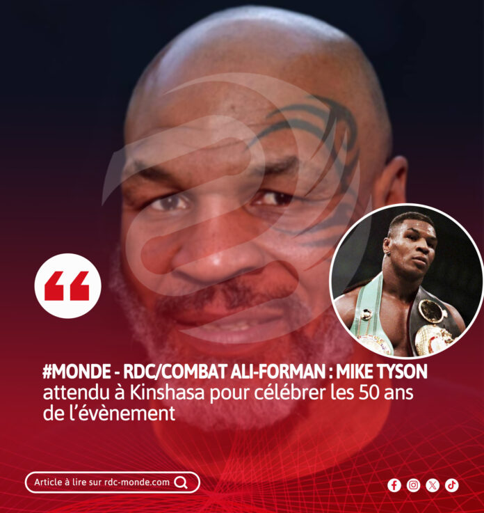 Le légendaire boxeur américain Mike Tyson est attendu à Kinshasa le 17 octobre 2025, à l’occasion de la célébration du cinquantenaire du combat historique entre Muhammad Ali et George Foreman, tenu jadis le 30 octobre 1974 dans la capitale congolaise.
