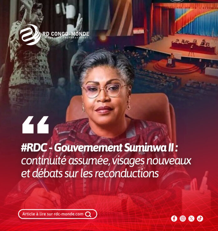 Le Gouvernement Suminwa I (29 mai 2024) comptait 54 membres. Ce nouvel exécutif, resserré d’une unité, conserve plus de la moitié des figures déjà présentes, parfois aux mêmes portefeuilles, parfois déplacées à d’autres fonctions.