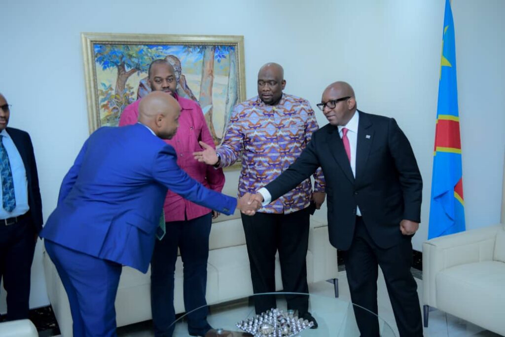 Le Premier Ministre, Jean-Michel Sama Lukonde a reçu, ce lundi 23 janvier à la Primature, le chef de direction du groupe kenyan KCB, Paul RUSSO, venu lui présenter ses civilités et le nouveau partenariat de son groupe avec la banque TMB. Il était conduit par Olivier Meisenberg, l’Administrateur Directeur général de la TMB.